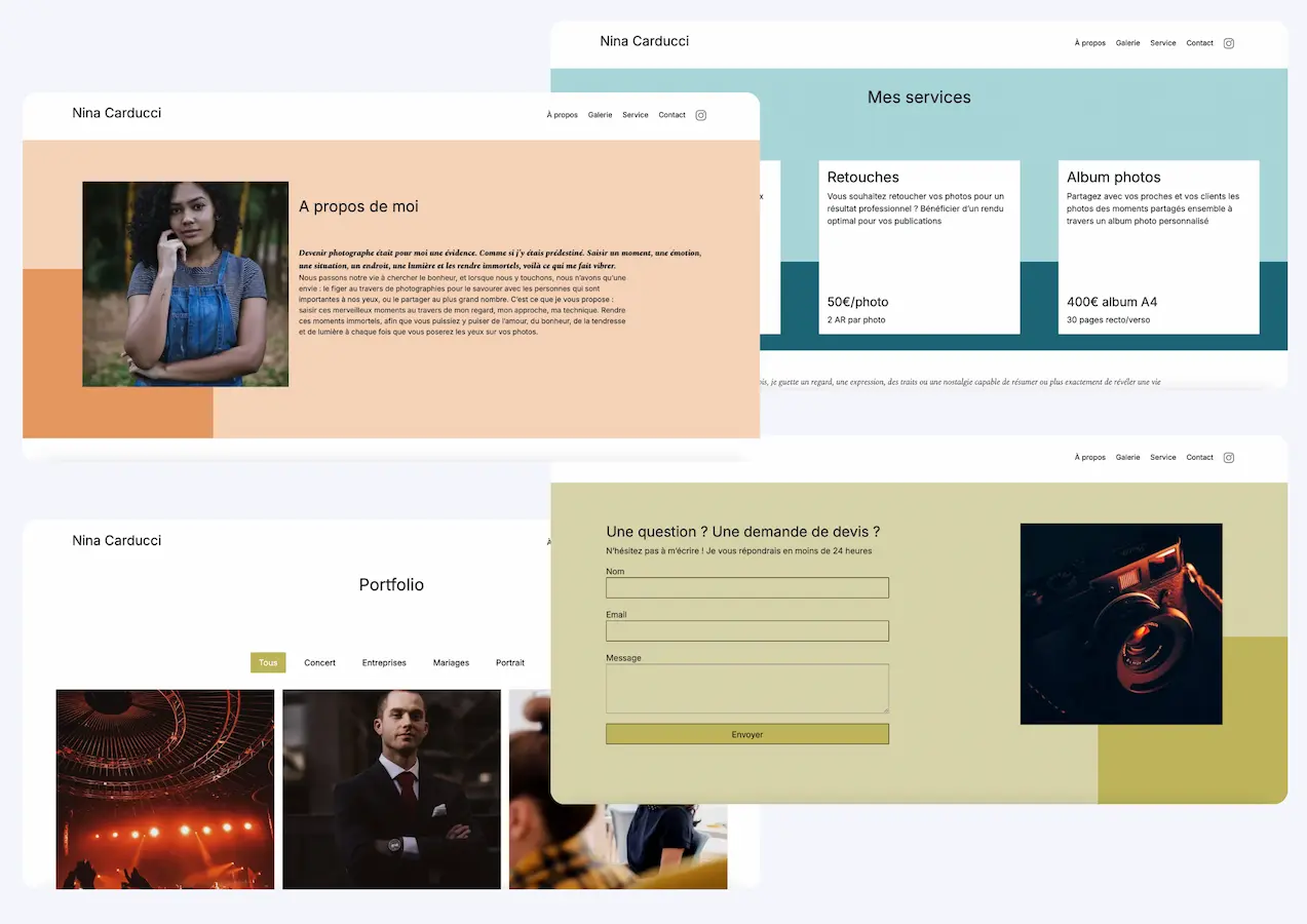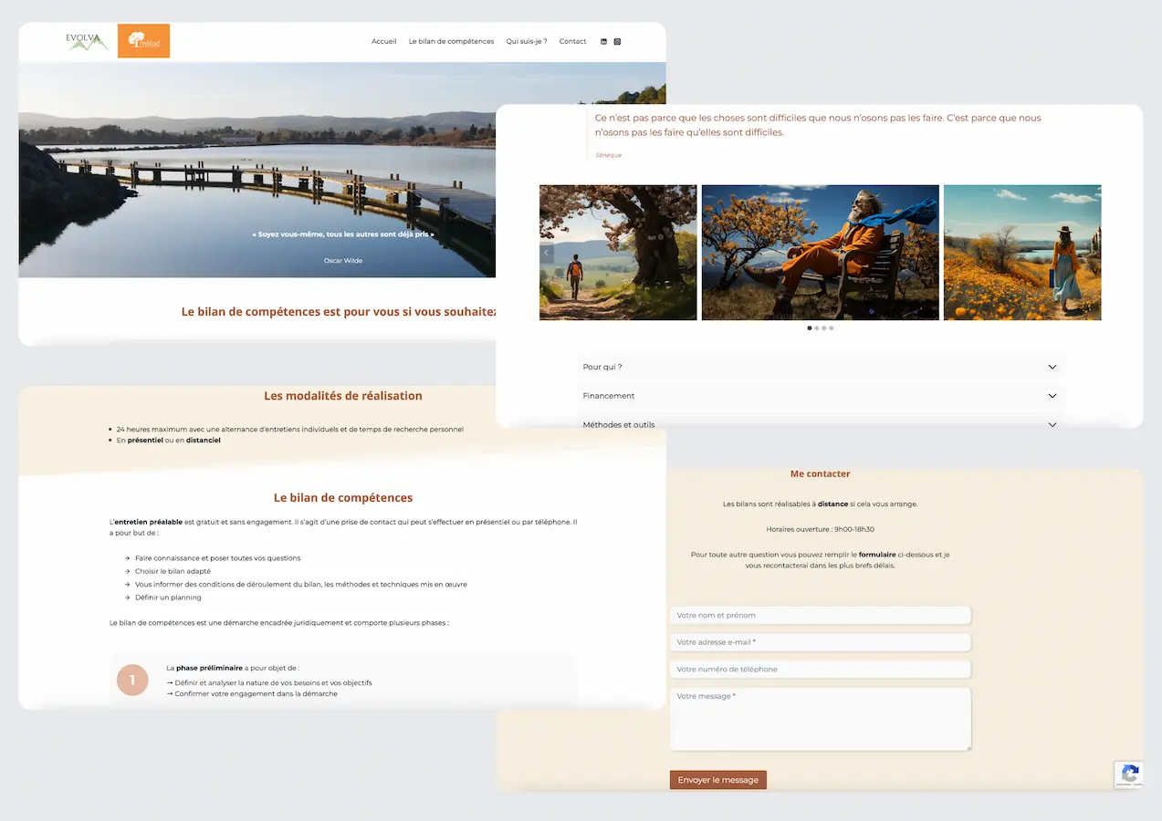Un site web multipage, conçu pour présenter vos services, votre équipe et vos réalisations de manière claire et professionnelle. Chaque page est optimisée pour le référencement naturel (SEO) afin de maximiser votre visibilité en ligne, avec un design personnalisé, une navigation fluide et une structure intuitive.